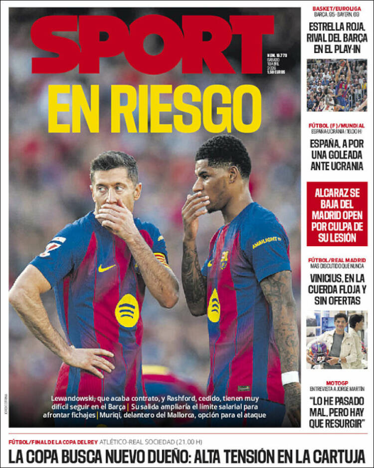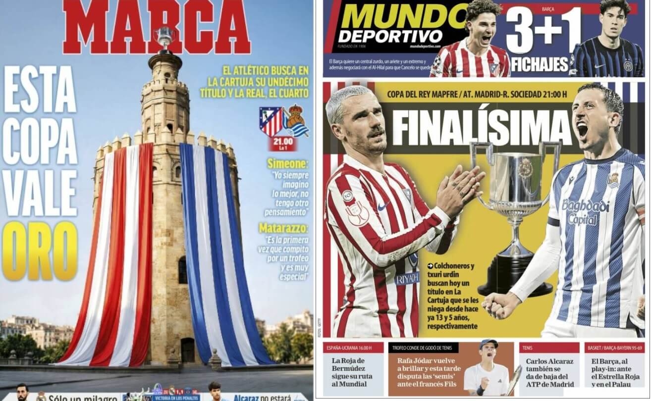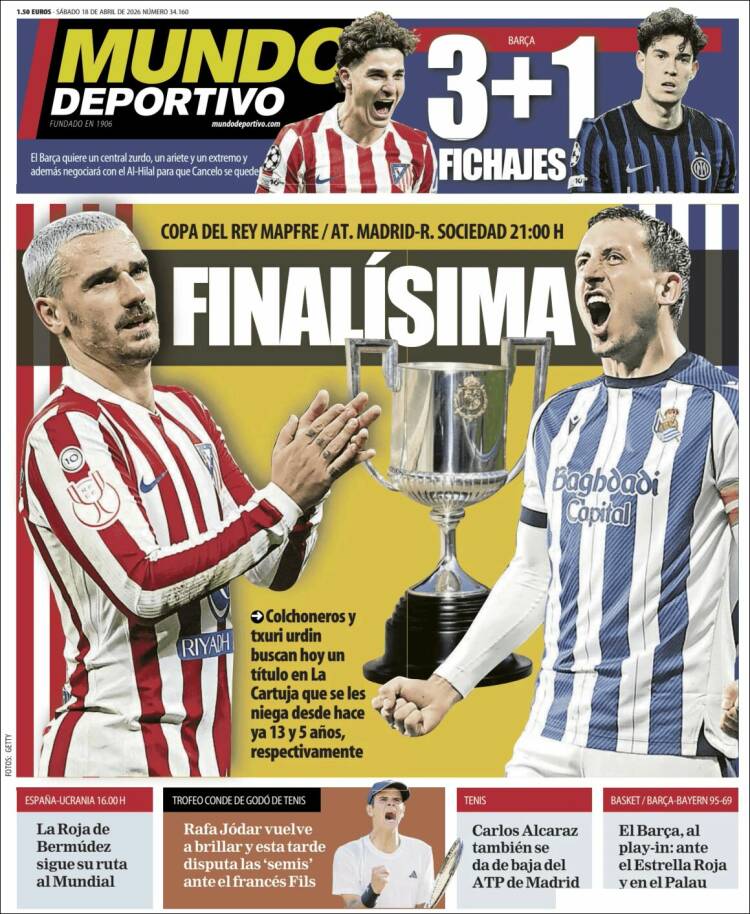 Prensa deportiva de España – Portadas diarios deportivos del sábado 18 de abril de 2026 Portada Diario as: Portada diario Mundo Deportivo: La Portada diario Marca: Portada diario Sport: Ver fuente Navegación de entradas Eugenio Suárez remolca dos y le da el triunfo a los Rojos Golden State Warriors, ¿y ahora qué? El panorama tras la eliminación en el Play-In