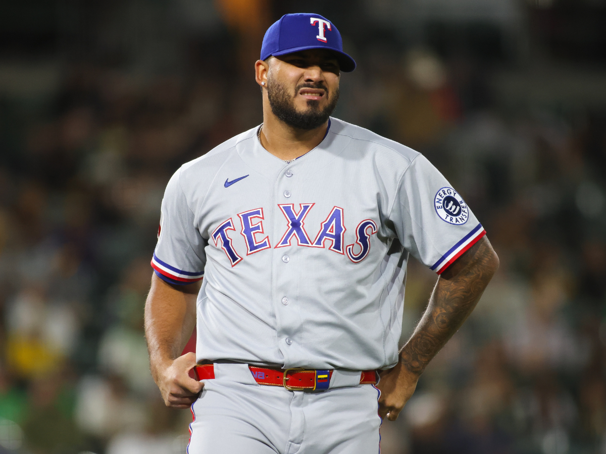 Luis Curvelo, el relevista venezolano de los Rangers de Texas, sufrió una aparente lesión en su brazo derecho, el de lanzar, al realizar un lanzamiento descontrolado el martes contra los Atléticos.